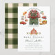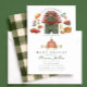 Celebre o seu pequeno agricultor a caminho com este encantador convite de chá de bebê com tema de fazenda. Com um lindo conjunto de roupa de bebê com macacão verde e camisa xadrez vermelha cercado por adoráveis elementos da fazenda como celeiro, trator, mamadeira, chapéu de palha, legumes e animais de estimação, este design rústico é perfeito para um chá de bebê em uma fazenda, no campo ou no quintal. As ilustrações suaves em aquarela e o fundo clássico xadrez criam uma atmosfera quente e aconchegante de campo. Personalize facilmente com os detalhes do seu evento para um convite de chá de bebê único e memorável que seus convidados irão amar.