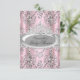 Convite de Chá de Bebê Rosa & Prata. Elegante desenho damasco prateado & linda tiara de jóias. Por Favor Note: Todas as imagens planas! elas não têm laços ou jóias reais!