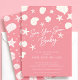 Celebre com este convite de chá de bebê Sea You Soon rosa, apresentando delicadas conchas, estrelas-do-mar e um design costeiro elegante. Perfeito para um chá de bebê na praia, um baby sprinkle costeiro, um chá de bebê com tema oceano ou um chá de bebê náutico. A paleta de rosa suave e branco dá a este convite de chá de bebê com conchas um visual doce, moderno e feminino para uma celebração sofisticada à beira-mar.