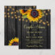 Modelo de convite de chá de casal de casamento rústico no campo em fundo de madeira escura de celeiro com buquês de girassóis amarelos grandes, cordas de luzes cintilantes e tipografia em dourado falso. +++++++++++++++ Fácil de personalizar com seus detalhes! ++++++++++++ O convite é adequado para festas ou churrascos ao ar livre no verão ou outono em jardim, quintal, casa rústica ou fazenda. ++++++++++ POR FAVOR, LEIA ISSO ANTES DE COMPRAR! Este é um cartão de casamento econômico impresso em uma folha de papel (cada folha tem um cartão). ++++ Para a melhor relação preço-qualidade, nosso conselho é escolher o tipo de papel Semi-Brilho (é grosso o suficiente para ser usado para papelaria) ++++ Se você precisar de envelopes, escolha a OPÇÃO DE ENVELOPE. +++ Verifique todas as informações e ortografia do seu texto porque você receberá exatamente o que vê - ninguém mais verificará nada antes da impressão. ++++ Este cartão é projetado para o tamanho 4,5 "x 5,6". No caso de você escolher outro tamanho do cartão e o texto ultrapassar a página, tudo precisará ser corrigido