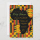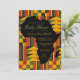 Este Convite de Chá de Bebê Tribal Africano apresenta elementos tribais em dourado falso, centro em forma de África e cores de fundo mutáveis. Você pode personalizar este convite inspirado na África para combinar com qualquer esquema de cores que combine bem com os elementos dourados.