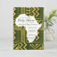 Este Convite de Chá de Bebê Tribal Africano apresenta elementos tribais em dourado falso, centro em forma de África e cores de fundo mutáveis. Você pode personalizar este convite inspirado na África para combinar com qualquer esquema de cores que combine bem com os elementos dourados.