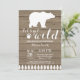 Convite de Chá de Bebê Urso Polar Rústico. Convite de chá de bebê de inverno. Convite de Chá de Bebê para Menino ou Menina. Vamos ficar selvagens. Convite de Chá de Bebê de Feriado de Inverno. Fundo de Madeira Rústica. Celeiro Vintage Retro Country. Para personalização adicional, clique no botão "Personalize" e use nossa ferramenta de design para modificar este modelo.