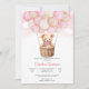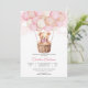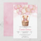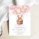 Celebre seu dia especial com este adorável convite de chá de bebê com ursinho de pelúcia, apresentando uma cesta de vime levantada por balões rosa pastel e creme contra um fundo de nuvens sonhadoras. Perfeito para homenagear as futuras mamães, este design caprichoso adiciona charme e elegância à sua celebração. Personalize com detalhes do evento para criar um souvenir que os convidados irão guardar. Ideal para chá de bebê de menina, este convite doce combina estilo divertido com apelo atemporal.