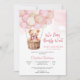 Celebre a chegada iminente do Bebê Elizabeth com este adorável convite de chá de bebê com ursinho. Com um design caprichoso de um urso em uma cesta levantada por balões pastel, este cartão define o tom perfeito para um encontro alegre. O céu rosa suave e o fundo de nuvens adicionam um toque doce, tornando-o ideal para homenagear a futura mamãe Carolina Anderson. Personalize com detalhes do evento e crie um souvenir que os convidados irão guardar. Perfeito para chá de bebê de menina, este convite combina charme, elegância e celebração.