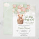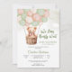 Celebre a chegada iminente do Bebê Elizabeth com este adorável convite de chá de bebê com ursinho. Com um ursinho fofo em uma cesta de vime levantada por balões pastel contra nuvens sonhadoras, este design adiciona charme e calor ao seu evento especial. Perfeito para homenagear Carolina Anderson, este cartão personalizável inclui detalhes do evento, informações de RSVP e notas do registro. Uma escolha encantadora para os futuros pais que desejam um chá de bebê caprichoso e memorável.