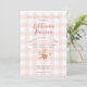 Convite de chá de bebê rosa pastel muito fofo com a quantidade certa de charme floral.