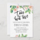 Convite de chá de noiva com cactus floral rosa pálido tema taco 'bout love. Este convite de chá de noiva de casal apresenta um cabeçalho de caligrafia preta e um arranjo de cactus florido rosa pálido. Ótimo para quem procura um convite de chá de noiva com tema taco.