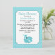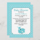 O convite para o chá de fraldas de um bebê doce, com gráficos bonitos de uma careta azul-turquesa e um fundo de turquesa e bolinhas branca. Personalize o texto personalizado para atender às necessidades do seu chá. Um chá bonito convida a mãe a ser amada.