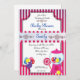 Convites de Chá de fraldas de Candies e Sweets com doces de fundo listrados e máquina de pastilha elástica, um convite vivo e fresco para chás de fraldas