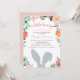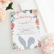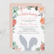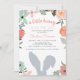 Adoráveis convites para chuveiros de bebês com tema primavera para seu coelhinho no caminho apresentam uma borda floral boho e uma silhueta de orelhas de coelhinho de cinza.