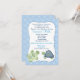 O convite para o chá de fraldas de Churrasqueiro de Tartaruga Super Aguda apresenta uma tartaruga e uma tartaruga marinha com uma fronteira de ponto azul. com
