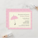 As bordas escaldadas ecoam as curvas do fundo do guarda-chuva neste convite de chá de fraldas bonito. Ele apresenta um guarda-chuva cor-de-rosa pastel em cima de um quadro de borda recortado e colorido creme. Tudo se senta sobre um fundo estampado de flor rosa. Não se esqueça de adicionar qualquer informação extra na parte traseira ou simplesmente exclua-a para deixar o vazio traseiro. Disponível em cores alternativas com produtos correspondentes.