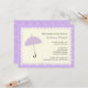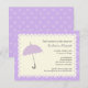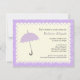 As bordas escaldadas ecoam as curvas do fundo do guarda-chuva neste convite de chá de fraldas bonito. Ele apresenta um guarda-chuva púrpura pastel em cima de um quadro de borda redimensionado e colorido creme. Tudo se senta sobre um fundo com padrão de flores roxas. Não se esqueça de adicionar qualquer informação extra na parte traseira ou simplesmente exclua-a para deixar o vazio traseiro. Disponível em cores alternativas com produtos correspondentes.