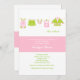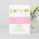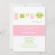 Este moderno convite cor-de-rosa, branco e verde é uma forma excelente de saudar a nova adição. A design apresenta roupas de bebê em uma fila contra um pano de fundo branco com uma banda rosa larga e costura branca.O cartão é fácil de personalizar com seu texto, fonte, cor da fonte e escolha de seis tipos de papel.