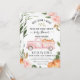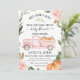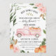 Belo verde e um convite floral de abóbora com um caminhão cor-de-rosa cheio de abóboras.