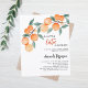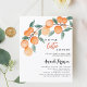 Um branco. Decorados com laranjas de cor aquosa. Personalize e adicione um nome e detalhes da parte. Texto: Uma pequena Cutie está a caminho.