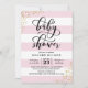 O convite para o chá de fraldas apresenta uma aspersão do falso confetti dourado e uma fonte moderna de caligrafia.
