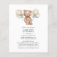 Convite de Chá de fraldas de Script de Balões de Urso Orçamentário. Cartão de convite à apresentação de chás de fraldas, com tendência e sexo neutro, que inclui um bebê urso com balões. Perfeito para chás de fraldas de rapazes e raparigas.