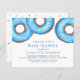 Este convite rosquinha azul do orçamento convida a família e os amigos ao chá de fraldas do seu filho. Ele apresenta rosquinhas azuis de cor aquosa com borrifados coloridos e tipografia de na moda. Facilmente personalizável. Use a Ferramenta Design para alterar o tamanho, o estilo ou a cor do texto. Original Watercolor © Michele Davies.