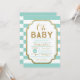 Este convite de chá de fraldas de ouro e menta é perfeito para a chegada de uma nova menina. Note que não é utilizada nenhuma falha real. O convite é feito com uma textura de brilho para parecer com brilho quando impresso. Veja o compro Ellison Reed para designs mais criativos!