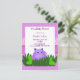 Um convite para chá de fraldas de hipopótamo roxo. Plantas da selva e uma borda de impressão de animais cor-de-rosa a acentuam. Personalize com todas as suas próprias informações conforme desejado.