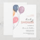 Comemore com estilo usando este simples mas elegante convite para chás de fraldas. Apresentando balões pastéis de cor aquática macia e tipografia moderna, esta design neutra em termos de gênero é perfeita para aqueles que amam um olhar limpo e minimalista. Excelente tanto para meninas quanto para meninos. Texto totalmente editável — personalize para o seu evento!