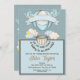convite para chás de fraldas para cima e para fora. Vintage Hot Air Balloon Blue Chá de fraldas Invitation Os seus convidados com este chá de fraldas elegante convidam com um balão de ar quente bonito entre nuvens e tipografia moderna com cartão de pedido de livro destacável. Basta adicionar os detalhes do seu evento neste modelo fácil de usar para torná-lo um convite de tipo único.