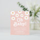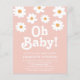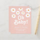 Você está planejando um chá de fraldas neutro em relação ao gênero? Este convite para chá de fraldas floral de orçamento é decorado com margaridas e tipografia retrorreflectora de na moda em um fundo cor-de-rosa suave.