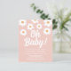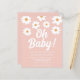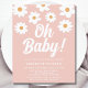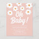 Você está planejando um chá de fraldas de menina? Este bonito convite para chás de fraldas florais é decorado com margaridas desenhadas à mão e Oh Baby! em tipografia retrô branca num fundo rosa. Facilmente personalizável. Desenho original © Michele Davies.