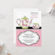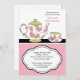 Adorável Sip floral azul e Consulte Convite para Chá de fraldas. Apresenta um pote de chá floral rosa e verde e uma xícara de chá. Alguns elementos corazondulce.etsy.com.