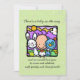 Esta mão pintada e um convite de chá de fraldas super original é tão incrivelmente encantador. Ele apresenta um bebê sorridente inocente com um coelho branco e um cachorrinho azul. Eles estão sentados juntos ao sol. Pintado para se parecer com uma janela de vidro manchado. Bolinhas e corações destacam a ilustração. Em cores quentes e brilhantes de roxo, azul verde e amarelo. Impresso em ambos os lados e totalmente personalizável. Torne o evento de chá único!