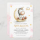 Celebre a chegada de uma doce menina com este convite mágico de chá de fraldas unicórnio! Apresentando um unicórnio aquoso, sentado em uma lua crescente ouro, rodeado por estrelas cintilantes e nuvens cor-de-rosa pastel, este charmoso design adiciona um toque sonhador à sua celebração. O convite é totalmente editável, fazer fácil de personalizar com os detalhes do evento. Uma escolha perfeita para chás de fraldas brancos, celestes ou inspirados em conto de fadas!