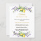 Convite de chá de lingerie elegante com lavanda e limão, apresentando um design botânico fresco com limões amarelos e lavanda roxa suave. Perfeito para casamentos de verão, jardim ou inspirados no Mediterrâneo.