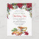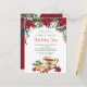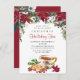Cartão de convite de festa de Natal com poinsétia vermelha.