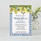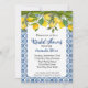 Convite de Chá de Noiva com borda de azulejo azul e branco e design de limão