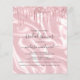 Um design moderno e elegante com um fundo de seda ou cetim rosa e uma borda superior de pingos de glitter rosa. As palavras "chuva de presentes de noiva" e o nome da noiva aparecem em letras minúsculas em caligrafia com floreios decorativos no início e no final, com o texto restante em fonte sem serifa. O fundo de cetim rosa e a borda de pingos de glitter são repetidos no verso. (Para manter os floreios, substitua apenas as letras do nome da noiva, deixando os símbolos no lugar.)