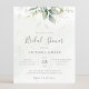 Belo convite de chá de noiva com eucalipto aquarela e folhas douradas.