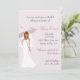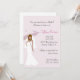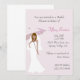 Lindo convite de chá de noiva feito em um fundo cor de rosa empoeirada pálida, com gráficos de uma noiva bonita, segurando um guarda-chuva rosa. O texto é totalmente personalizável e pronto para você personalizar. Convite encantador que a noiva irá guardar, com todos os seus souvenirs de casamento.