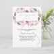 Um fundo branco elegante, decorado com flores cor-de-rosa pintadas à mão e um laço rosa. Personalize e adicione um nome e detalhes da festa.