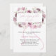Um fundo branco elegante, decorado com flores cor-de-rosa pintadas à mão e um laço rosa. Personalize e adicione um nome e detalhes da festa. Texto: Ela está dando o nó!