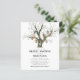 Convites de chá de noiva rústicos econômicos com tema florestal com tronco de carvalho aquarelado, um coração esculpido com as iniciais do casal, lanternas de luz vintage e um modelo elegante para a comitiva de noiva.