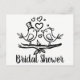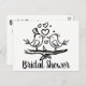 Defina o tom divertido do seu chá de noiva com este lindo convite de chá de noiva de pássaros de amor preto e branco em formato de cartão postal. Os detalhes do seu chá de noiva são impressos no verso do cartão postal em letra cursiva preta e fontes pretas fáceis de ler. Por favor, role para baixo para ver os produtos de casamento e festa que você pode gostar.