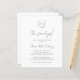 Convite tradicional e clássico de chá de noiva preto e branco econômico, apresentando um brasão de casamento com o monograma do casal dentro de uma grinalda, juntamente com "Ela disse sim!" e o seu nome em caligrafia. Este convite simples, porém elegante, é ótimo para um chá de noiva formal.