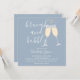 Um convite elegante para chá de noiva com espumante e letra característica, este convite sofisticado pode ser personalizado com suas informações em letras chiques em um fundo azul poeira. Criado por Thisisnotme©