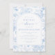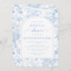 Sofisticado e refinado, este convite de chá de noiva clássico apresenta um delicado padrão Chinoiserie adornado com um padrão de flores azul claro e branco, perfeito para uma celebração de primavera ou verão.