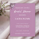 Convite de Chá de Noiva fresco e elegante com um buquê pintado de flores no canto superior esquerdo, juntamente com seus detalhes em letra cursiva branca sobre um fundo de lavanda.