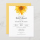 Convite de chá de noiva com um lindo girassol amarelo e fundo branco. Pronto para personalização fácil.