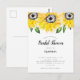 Convite de cartão postal de chá de noiva com tema de girassol elegante. Criado e ilustrado com amor por Kristine Lee Designs www.kristineleedesigns.com