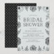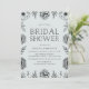 Convite de chá de noiva floral vintage elegante apresenta um fundo azul claro com uma borda botânica preta composta por flores e folhas desenhadas à mão. O design apresenta uma fonte vintage moderna que certamente causará uma boa impressão nos seus convidados. Personalize o convite adicionando os detalhes do seu chá de noiva.